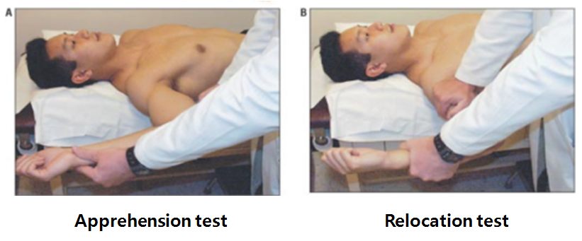 환자가 관절이 빠질 것 같은 염려나 불안을 느낀다면 검사 양성입니다. 염려나 불안감 없이 통증만 호소한다면 어깨 관절의 불안정성 보다는 회전근개의 후방 충돌 등을 시사합니다.